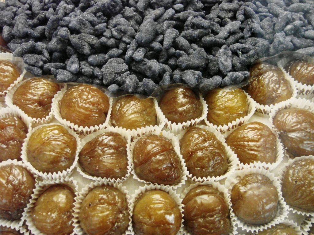 Nie zapominajmy o słodyczach. Kasztany jadalne poza pieczeniem (oraz gotowaniem) można podawać także w formie słodkiego deseru. Kandyzowane kasztany to kolejna bardzo popularna przekąska m.in. we Francji, Włoszech oraz Turcji. We Włoszech używa się do tego przepisu większych kasztanów nazywanych marroni. Krem kasztanowy jest także składnikiem innych deserów. W Europie deser znajdziemy pod nazwą Marron glacé, w Turcji – Kestane şekeri. Jest to dość łatwy przepis polegający na gotowaniu kasztanów w syropie cukrowym. Kandyzowane kasztany to także doskonały pomysł na prezent – można je przez dłuższy czas przechowywać w temperaturze pokojowej. A Wy próbowaliście już kasztanów?