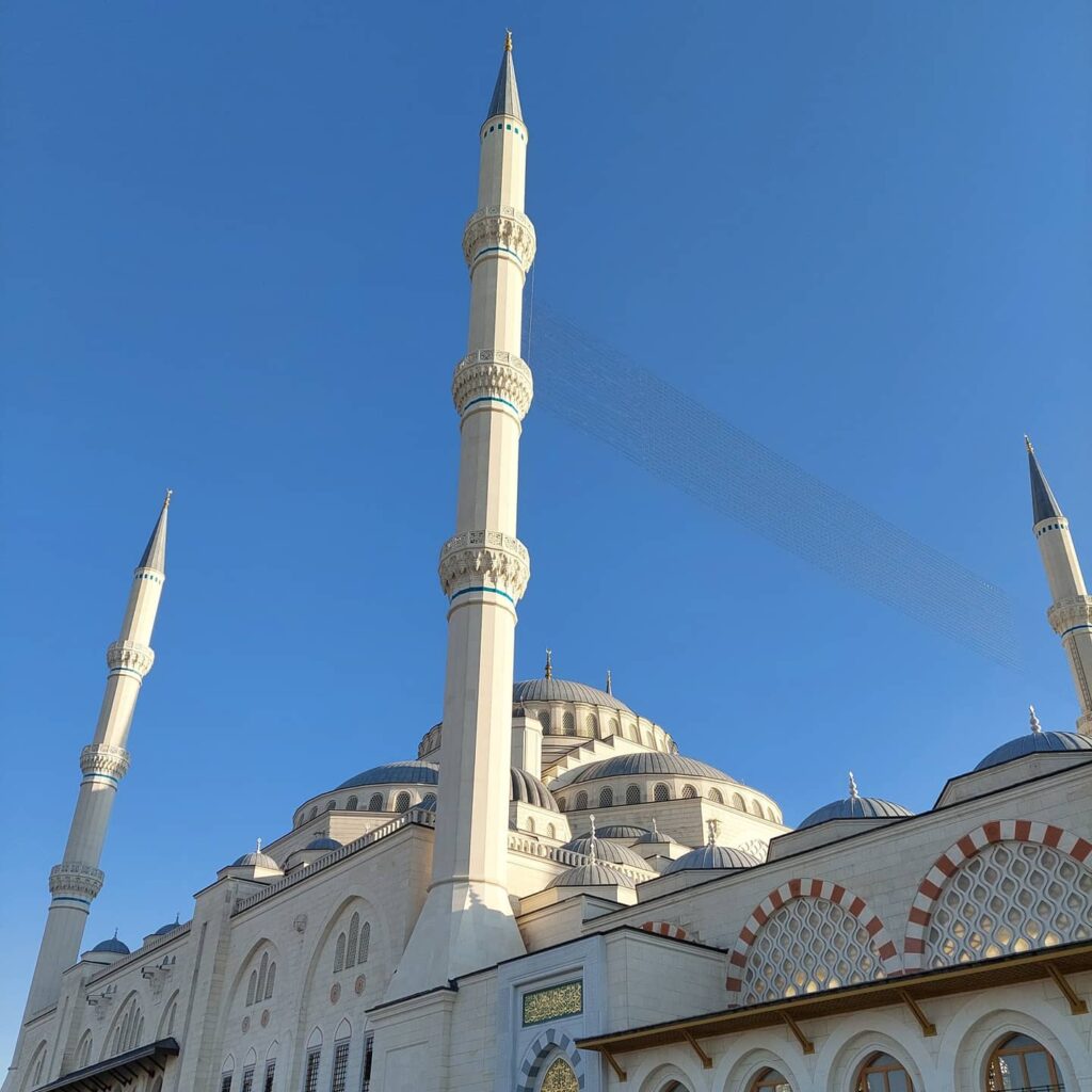 Wielki Meczet Çamlıca w dzielnicy Üsküdar w Stambule odwiedziłam w ostatni dzień Święta Ofiarowania, czyli Kurban Bayramı. Budynek został zaprojektowany przez dwie architektki: Bahar Mızrak oraz Hayriye Gül Totu. Projekt budynku łączy inspiracje architekturą osmańską oraz dziełami słynnego Sinana, nadwornego architekta sułtanów Imperium Osmańskiego. Ukończenie i uroczyste otwarcie meczetu przez prezydenta Turcji Recepa Tayyipa Erdoğana nastąpiło w maju 2019 roku.