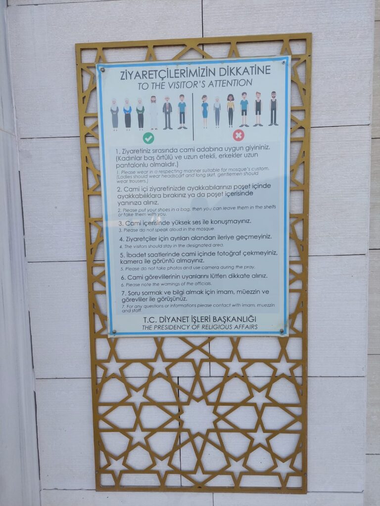 Meczet znajduje się na wzgórzu Çamlıca, dzięki czemu z góry możemy podziwiać panoramę miasta. Warto poświęcić czas także na zwiedzanie górnego dziedzińca, którego kopuły ozdobione są malowidłami ściennymi. Zwiedzanie całego terenu bez wizyty w muzeum czy pozostałych salach zajmuje około 2 godzin.