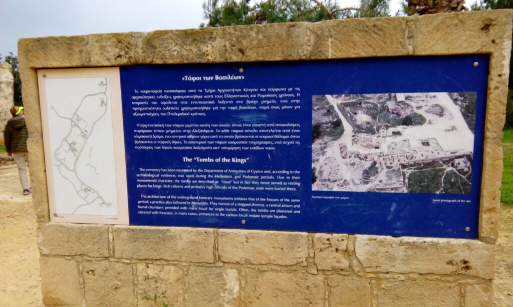 Kolejnym zabytkiem wpisanym na listę światowego dziedzictwa UNESCO są Groby Królewskie znajdujące się na północnym zachodzie miasta Pafos. Ten rozległy obszar zawiera wiele podziemnych grobowców wykutych w skale, które można zwiedzać po wykupieniu biletu w kasie przed wejściem. Wbrew temu, co sugeruje nazwa w grobowcach nie spoczywali królowie, ale bogaci dostojnicy z okresu ptolemejskiego.