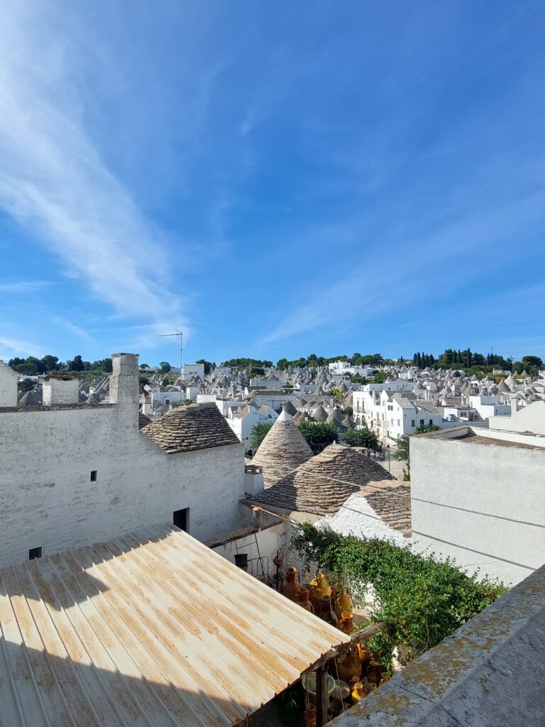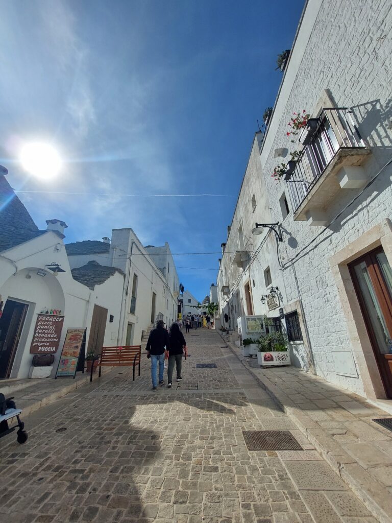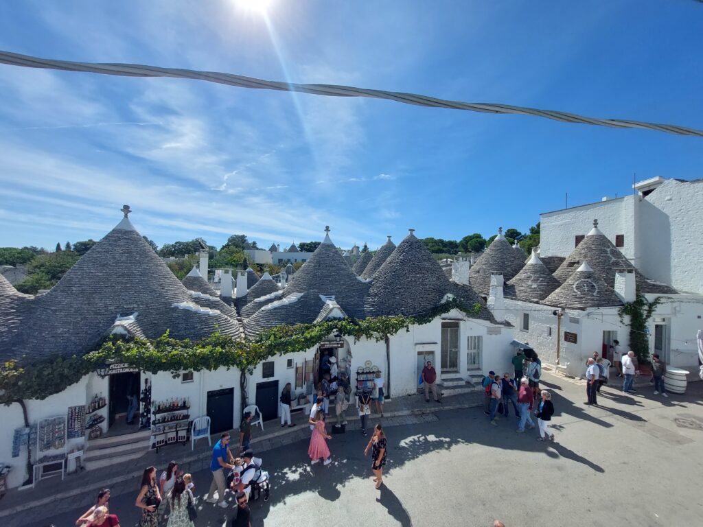 Najstarsze domki pochodzą jeszcze z XIII wieku, większość budowli jest datowana na około 200 lat. Obecnie domki trullo są wykorzystywane przez miejscowych jako sklepy z pamiątkami, kawiarnie czy hotele. Nawet poza sezonem (pod koniec września) turystów jest ogrom, podobnie jak miejscowych, którzy oferują swoje produkty i czerpią korzyści z kwitnącej w regionie turystyki.