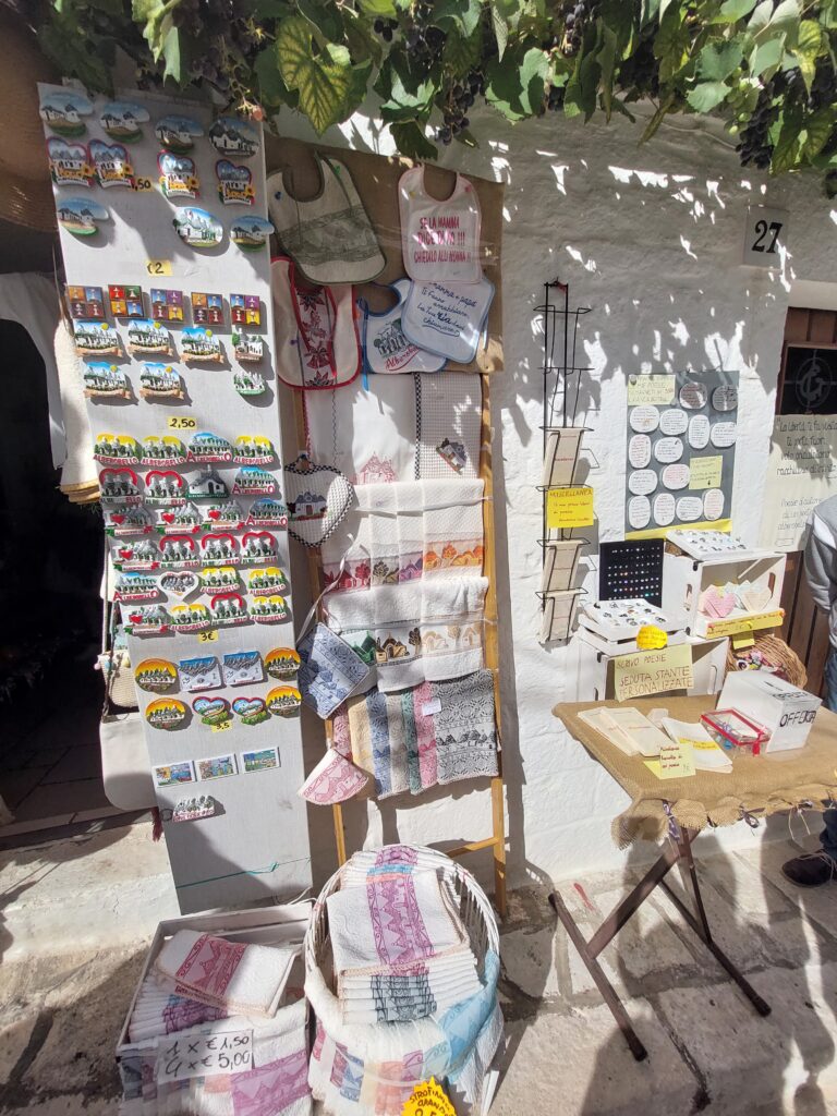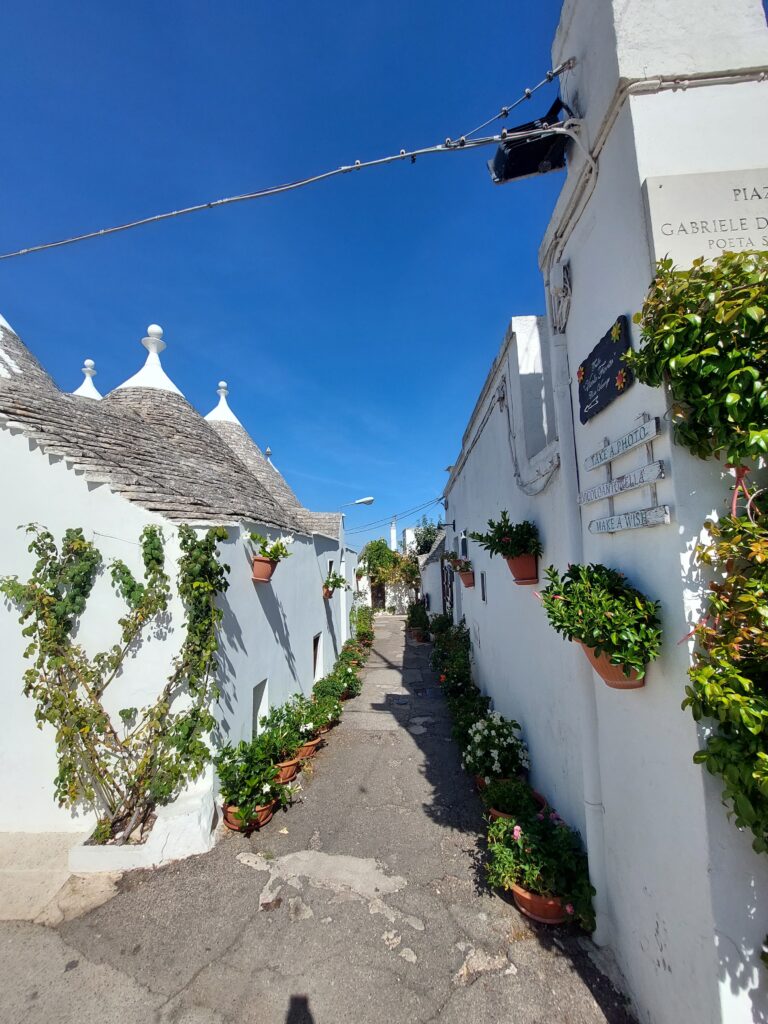 Na zwiedzanie Alberobello należy przeznaczyć około 4 godzin, aby móc spokojnie przespacerować się alejkami. Mając więcej czasu warto odwiedzić także kościół św. Antoniego, zrobić kilka zdjęć, spróbować włoskiej kawy z widokiem na miasto czy zrobić małe zakupy tymbardziej, że ceny nie zwalają z nóg. Popularnymi pamiątkami z tego regionu są ręcznie wyszywane ręczniki oraz Orecchiete, czyli oryginalny makaron z regionu Apulii w kształcie małych kapeluszy (lub uszek skąd ich nazwa). Dla zainteresowanych polecam także zakup limoncello, czyli likieru cytrynowego z południowych Włoch, na bazie którego przyrządzane jest wiele drinków.