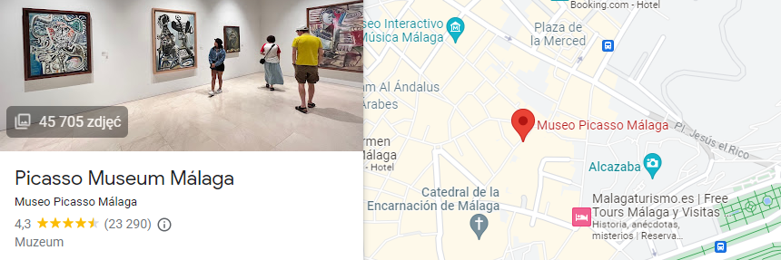 Nieopodal Katedry, bo zaledwie kilka minut spacerem znajduje się kolejne warte odwiedzenia miejsce, czyli Muzeum Picassa. Artysta urodzony w Maladze pozostawił po sobie dzieła: obrazy i rzeźby, które można obejrzeć w budynku Palacio de Buenavista